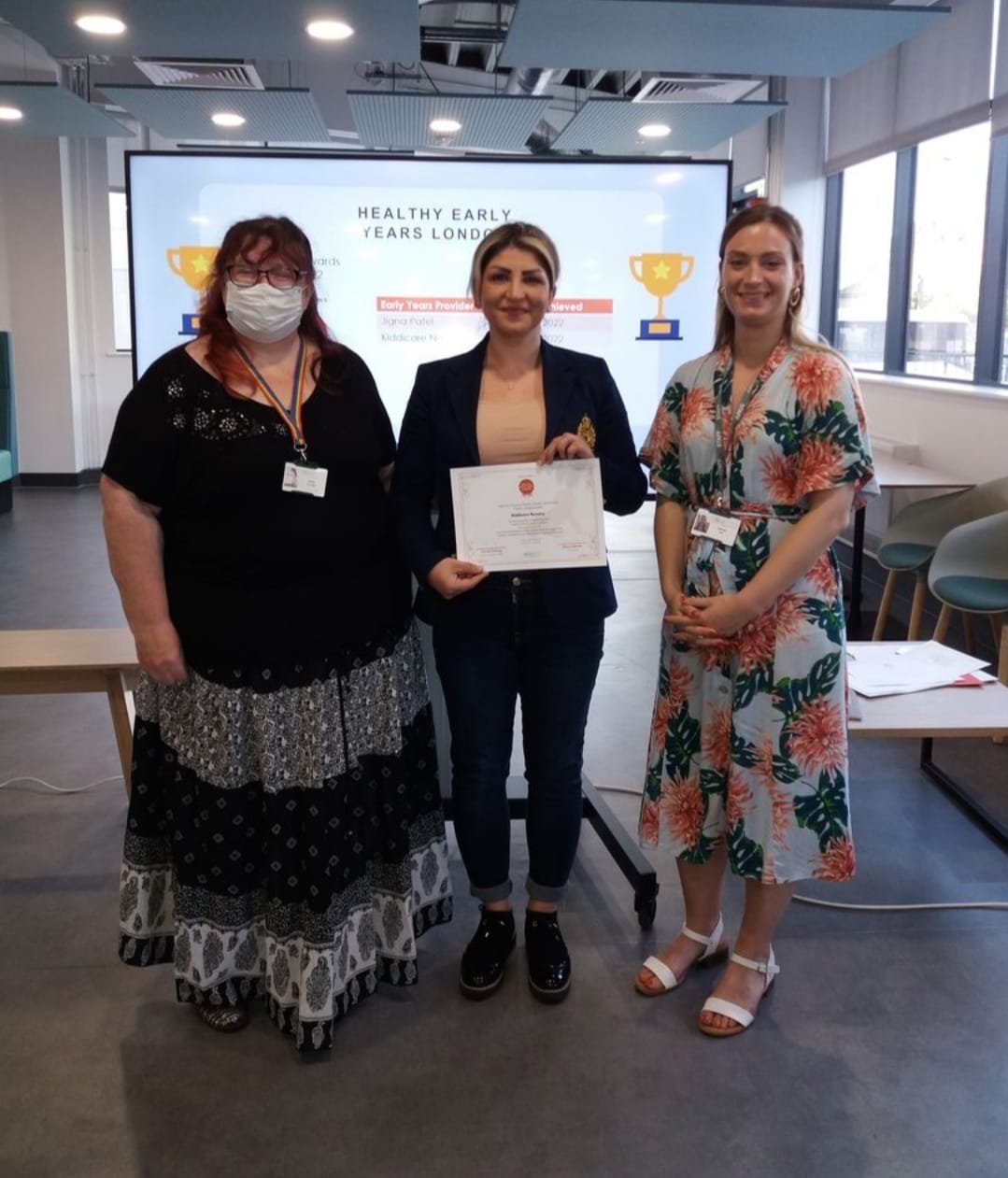Kiddicare Nursery promotes healthy eating and children’s wellbeing through balanced, freshly prepared meals that meet EYFS requirements and national nutritional guidance. We are proud to hold a 5-Star Food Hygiene Rating (Barnet Council) and the Pinner Gold Healthy Eating Award. Our 4-week menu is shared with parents through our monthly newsletter and is available for parents.